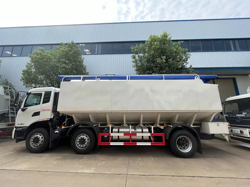 罐體采用4mm碳鋼板制作,罐體內分為貳個倉,(可根據(jù)用戶需求做多個分倉)可****各分倉卸料順序和速度,整車3條蛟龍(底部水平絞龍、尾部垂直絞龍、頂部卸料絞龍),由取力器經車輛變速箱取力后,將動力傳動**高壓油泵以驅動液壓系統(tǒng)帶動各絞龍工作,或者由3個5.5kw 380v電機帶動各絞龍工作,頂部絞龍液壓**舉升,可左右旋轉180°此車公告+環(huán)保+燃油齊全,全國上戶無憂!