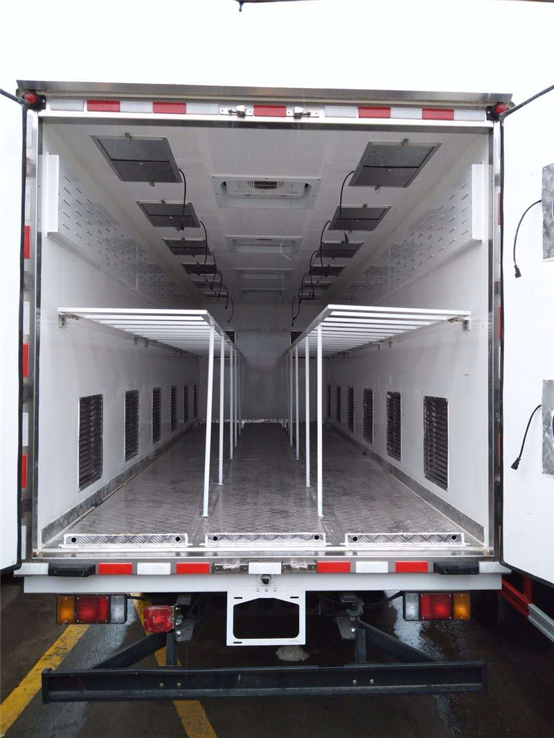 恒溫畜禽運輸車,該車型的研發(fā)成功,改變了畜禽在運輸過程中所受外界惡劣環(huán)境的影響. 為活禽提供了舒適的運輸環(huán)境,并改善